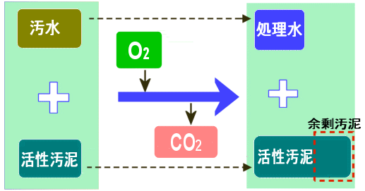 ・活性汚泥は汚濁成分を食べて新しい活性汚泥を生成し、徐々にその量が増加しますので、